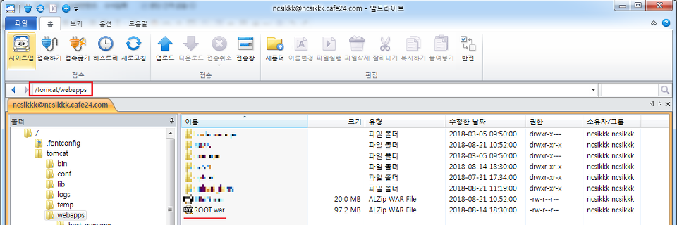 혹시나 war파일을 넣었는데 폴더가 생성이 안되거나 수정이 안되면 cafe24의 톰캣서버를 중지하고 다시 실행시켜 주세요~