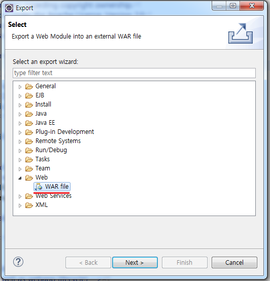 그 다음 Web에서 WAR file 을 클릭해주세요.