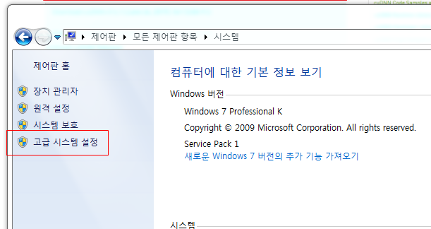 제어판-시스템으로 들어가서 고급 시스템 설정을 클릭