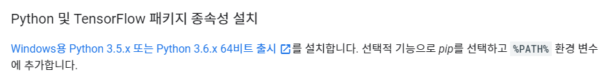 우선 저는 텐서플로우를 사용하기 위해 설치하는 것 이기 때문에 텐서플로우에서 권장하는 버전은 다음과 같습니다.