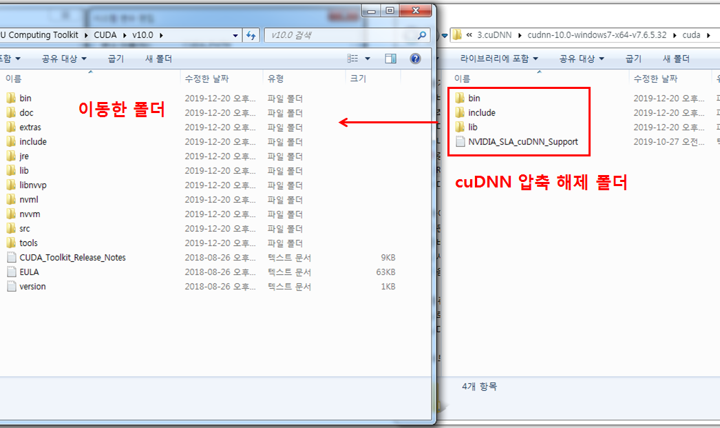 cuDNN 압축한 파일 전체를 선택하여 이동한 폴더 위치에 복사합니다.