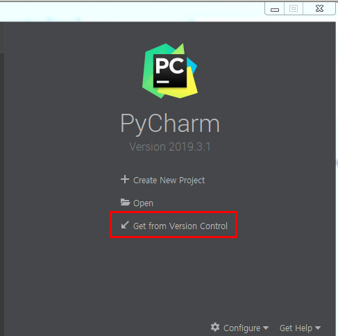 다음으로 "Get from Version Control"을 클릭합니다.