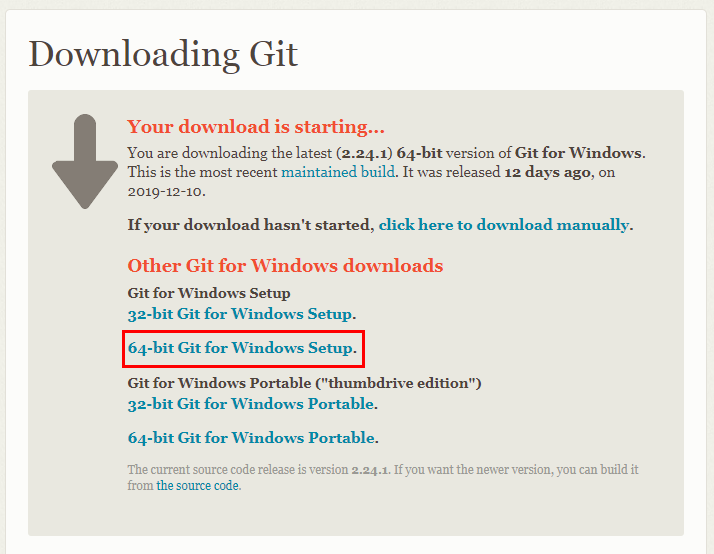 본인에게 맞는 Git 버전을 다운로드하여 설치합니다.