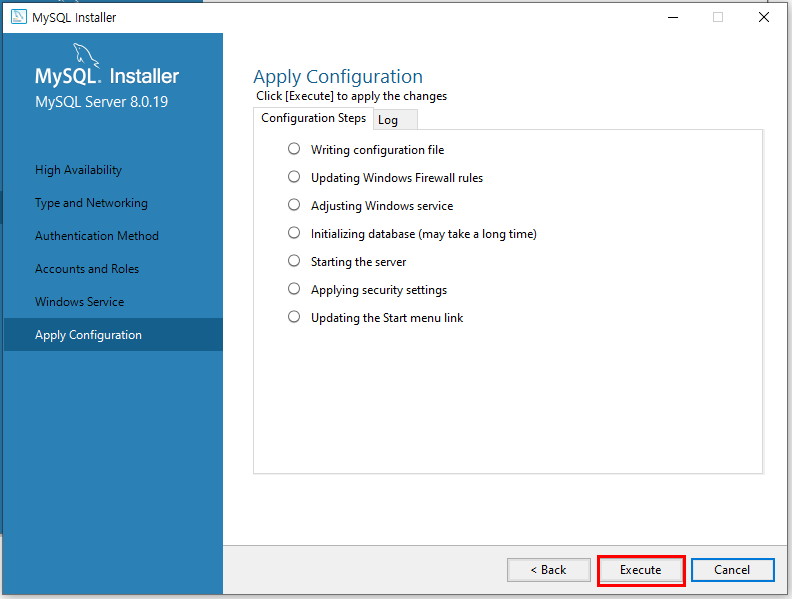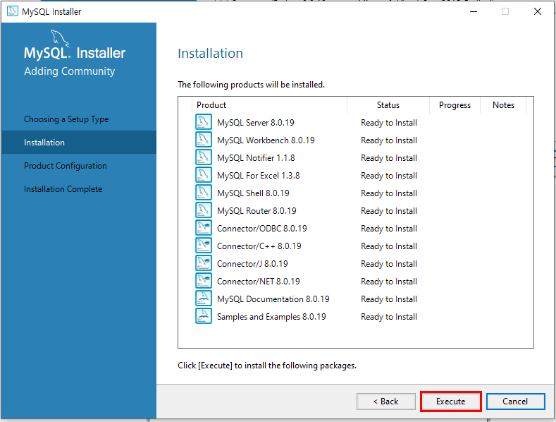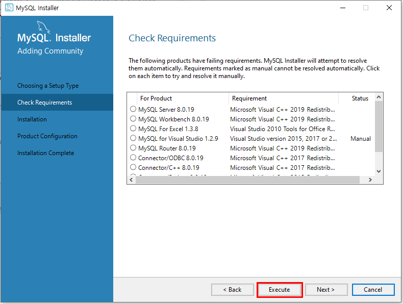 Excute 버튼을 클릭하면 설치시 필요한 요소를 설치합니다