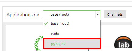 클릭하면 아까 설치한 py36_32 를 확인할 수 있습니다. 선택합니다.