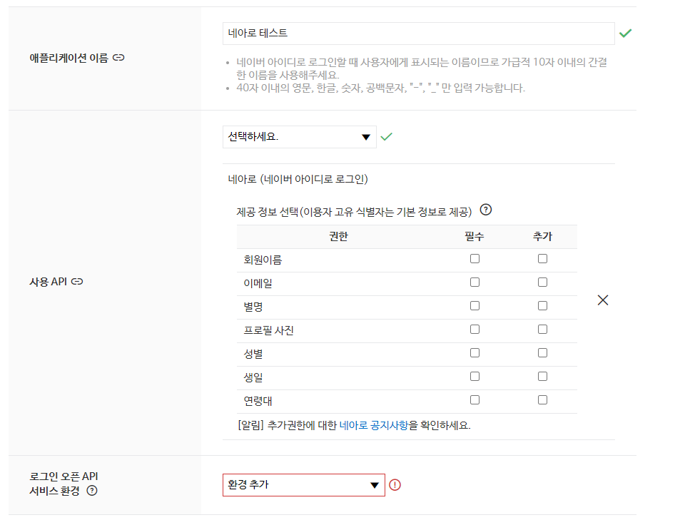 네이버 Developers에 어플을 등록합니다