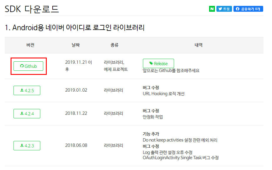 NAVER Developers - 네이버아이디로로그인 SDK 다운로드