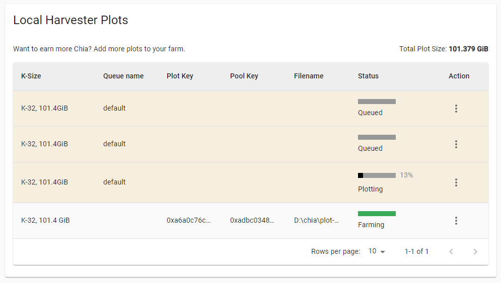 시간이 꽤 오래 걸리므로 HDD 용량에 맞게 플롯 생성을 미리 추가하시면 작업이 끝나면 다음 플롯을 생성하므로 플롯을 추가합니다.