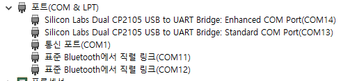 장치관리자에 다음과 같이 포트가 인식됩니다.