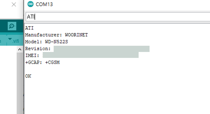 그리고 ATI 명령어를 입력하면 다음과 같이 모듈의 정보를 받아옵니다.