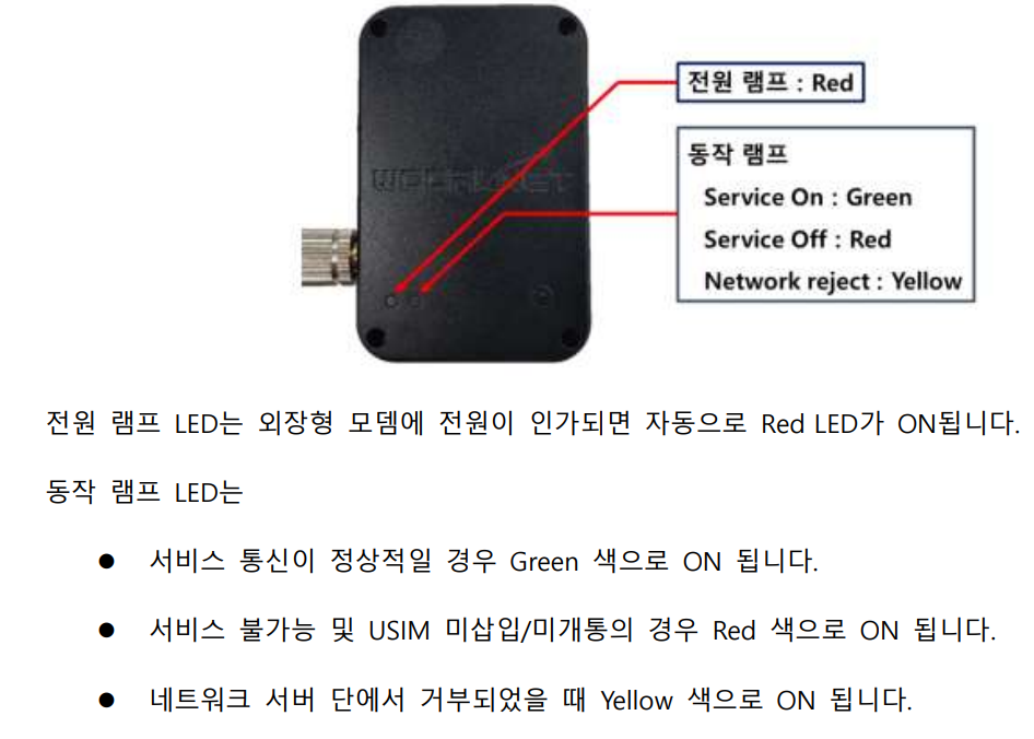모뎀의 LED에 따라 다음과 같은 상태를 나타냅니다.