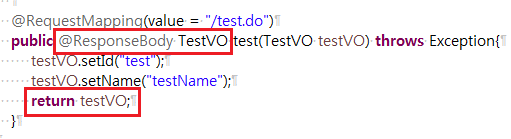 public @ResponseBody TestVO test(TestVO testVO) throws Exception{