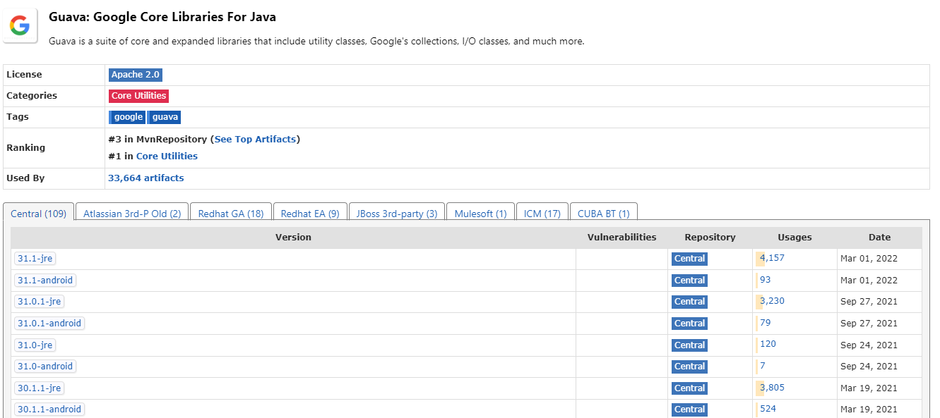 아래는 guava Maven 버전 정보입니다.