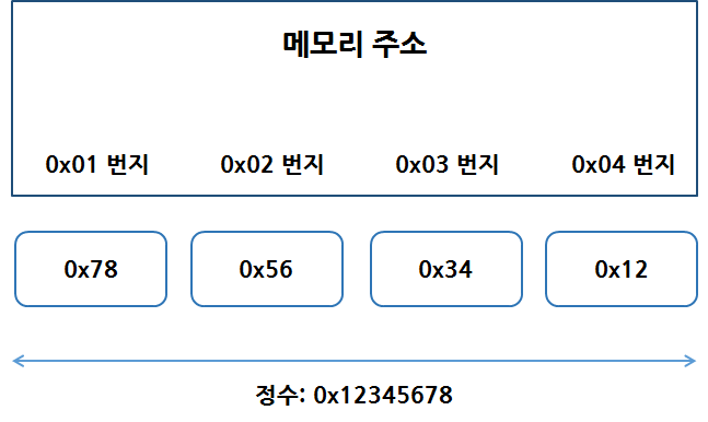 상위 바이트의 값을 작은 번지수에 저장하는 방식의 빅 엔디안[big endian]