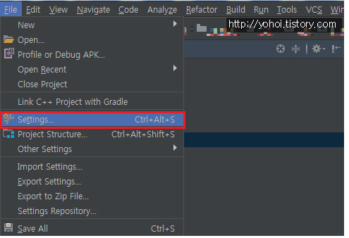 1.File -> Settings 클릭
