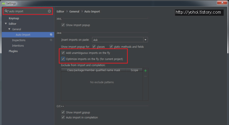 Optimize imports on the fly 체크