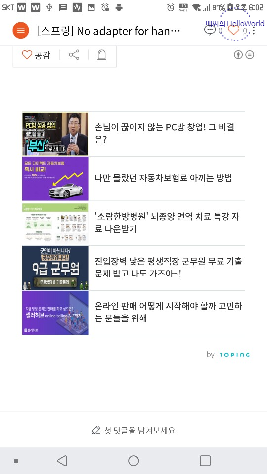 다음과 같이 광고가 정상적으로 동작합니다.