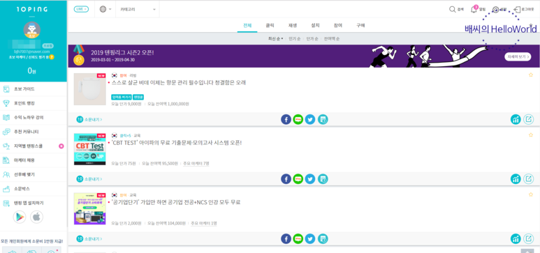 모바일 소문 서비스 텐핑입니다. 유익한 콘텐츠를 소문내고 유효한 소문을 낸 만큼 현금포인트를 쌓으세요.