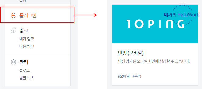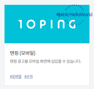 자 우선 티스토리의 플러그인에서 다음과 같은 텐핑 광고를 찾아볼 수 있습니다.