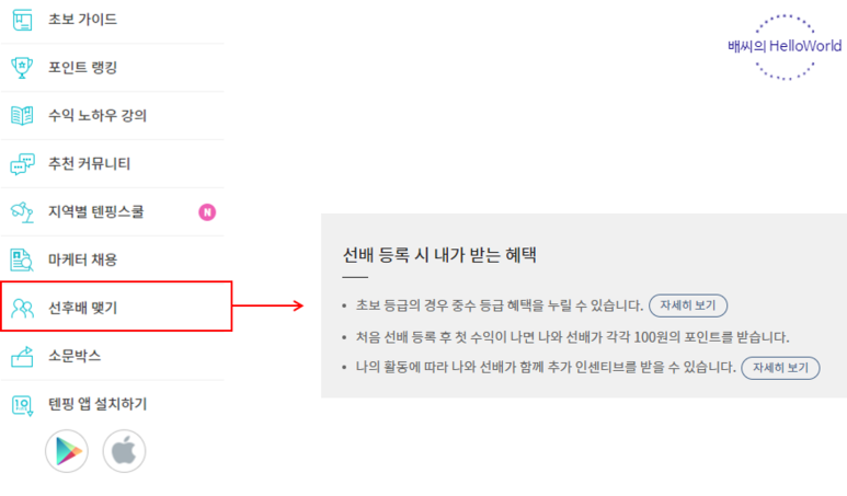 하지만 텐핑은 선후배 등록을 해야 많은 이득이 있습니다!