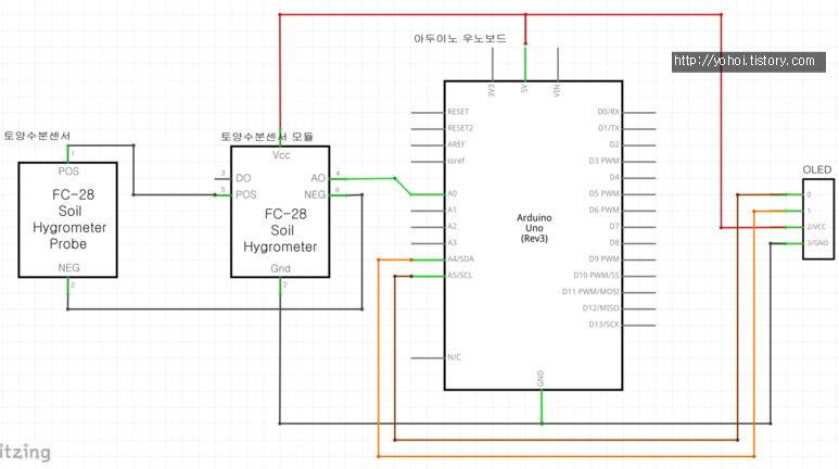 내용 : 토양 수분센서로 토양에 있는 수분량을 측정하고, 측정 값을 OELD에 표시하기
