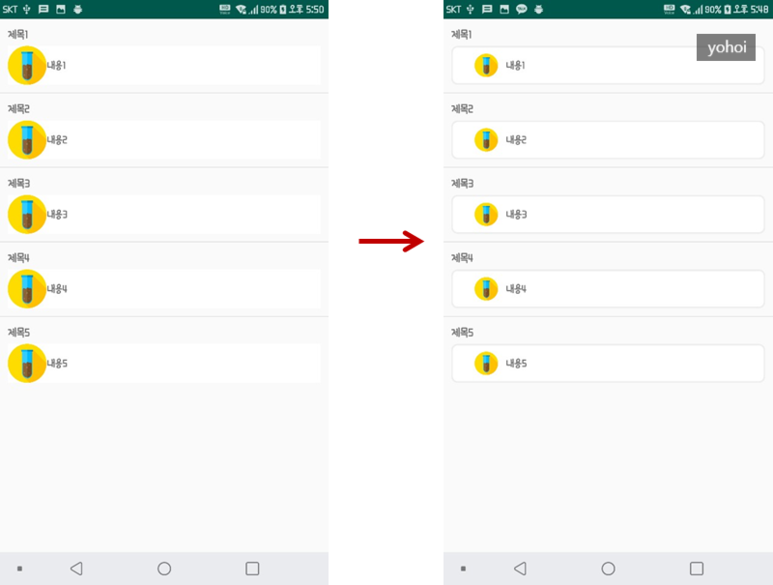 자 이번 글에서는 리스트 뷰 사용 시 각진 모서리를 둥글게 만드는 방법에 대해 알아보도록 하겠습니다.