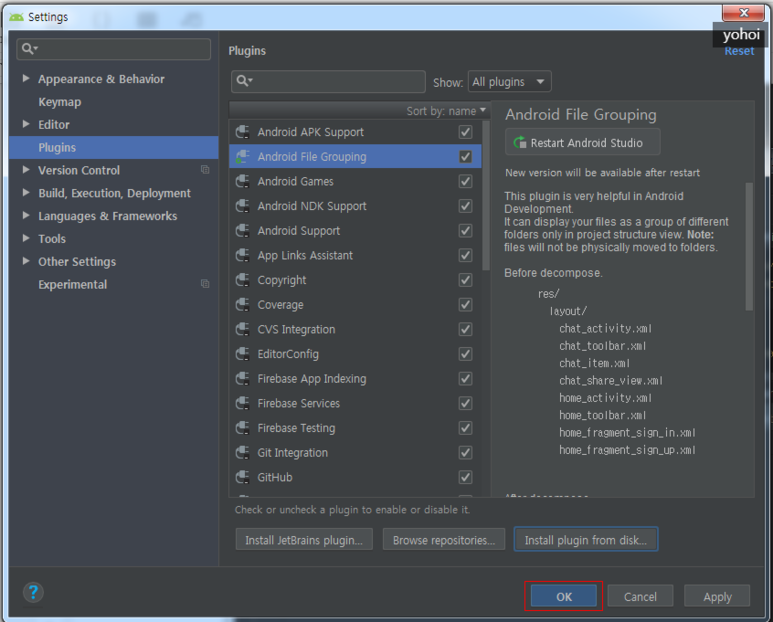 안드로이드 스튜디오에 플러그인 설치 방법은 간단합니다.