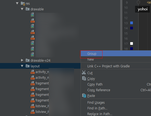 자 이렇게 안드로이드 리소스 폴더를 그룹화하여 편하게 관리를 하실 수 있습니다.