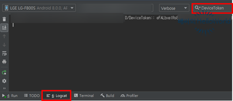 그리고 안드로이드를 실행하고 Logcat에서 확인합니다.