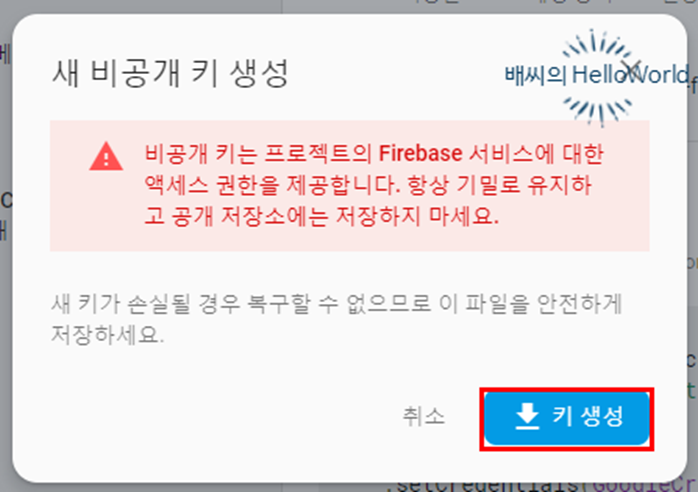 그럼 경고 창을 볼 수 있습니다. 비공개 키이므로 유출에 주의를 하셔야 합니다!