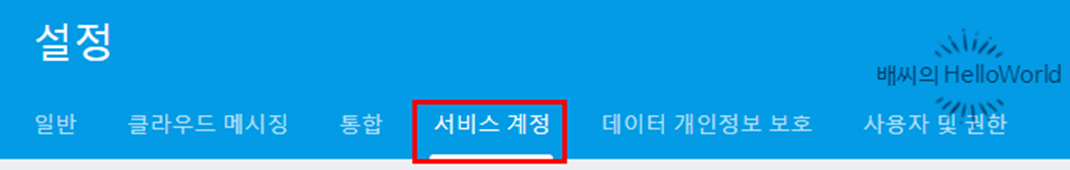 자 다음으로 서비스 계정 탭을 클릭합니다.