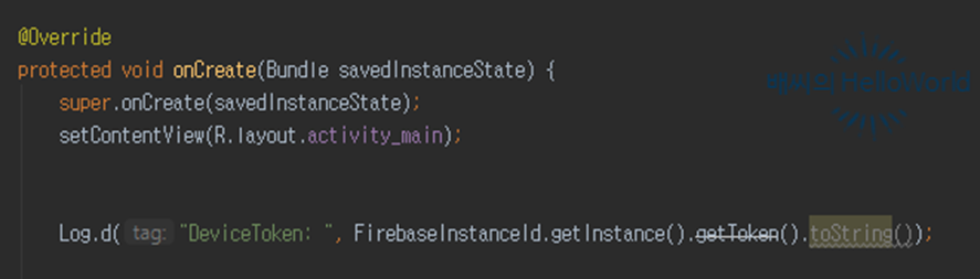 자 그리고 Firebase를 이용하기 위해 안드로이드 애플리케이션의 디바이스 토큰을 알아야 합니다.
