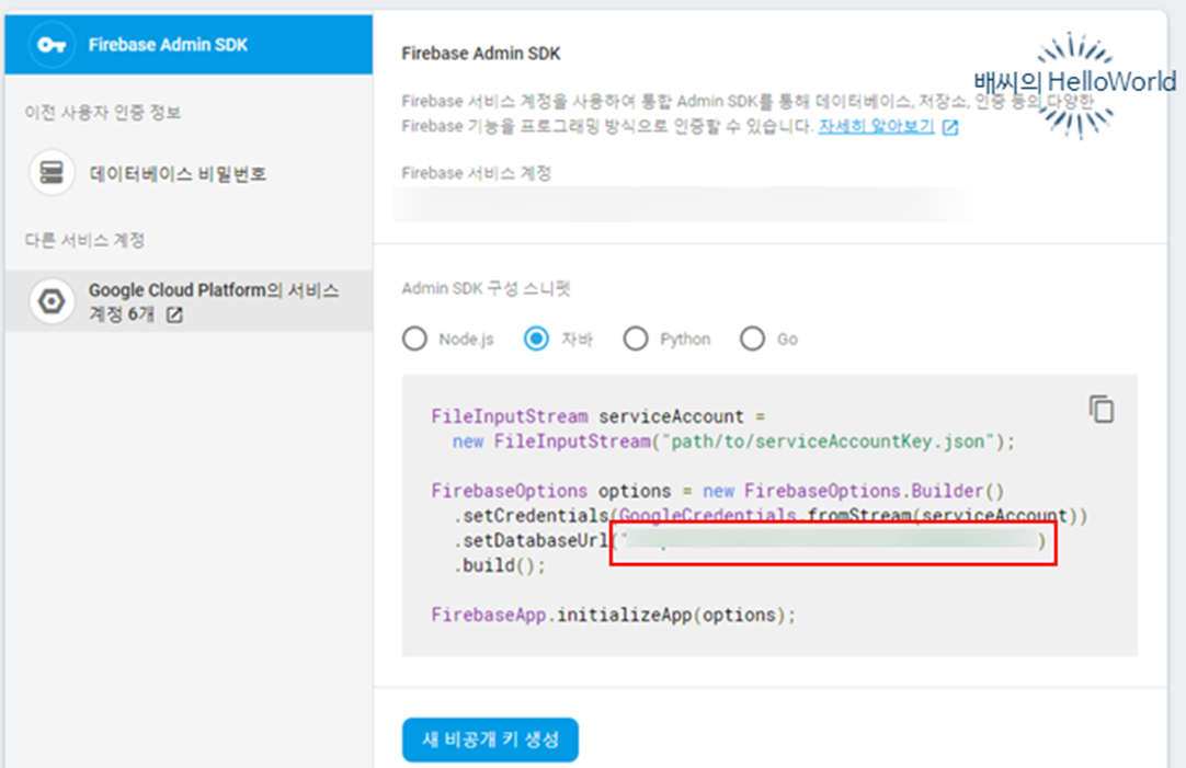그리고. setDatabaseUrl("<Firebase의 Url>") 이 부분에는 Firebase의 프로젝트 경로를 넣습니다.