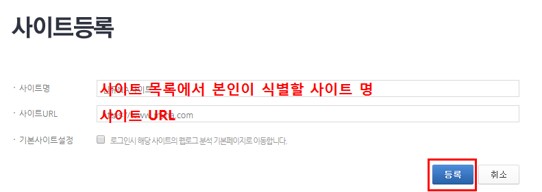 그리고 다음과 같은 내용을 입력 후 등록 버튼을 클릭합니다.