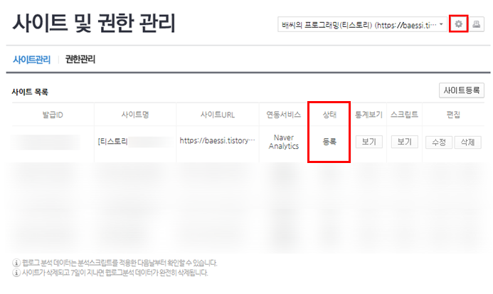 자 다음으로 다시 네이버 애널리틱스 사이트로 돌아가서 제대로 등록이 되었는지 확인합니다.