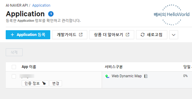 자 이렇게 어플리케이션 등록이 완료 되었습니다.
