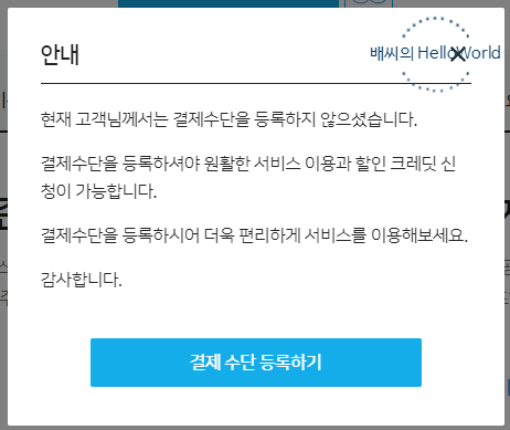 그리고 서비스를 이용하기 위해서는 결제수단을 반드시 등록하셔야 합니다.
