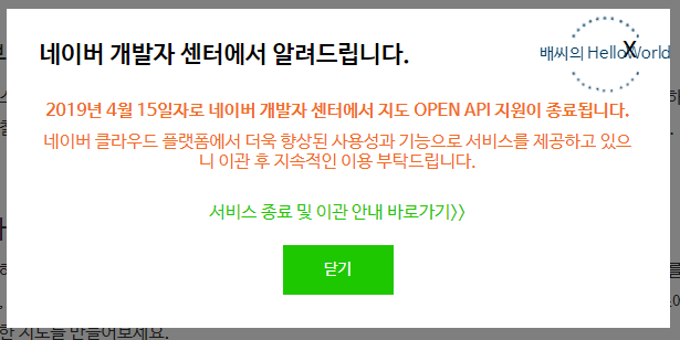 기존에 네이버지도 OPEN API 지원이 종료가 되었습니다.