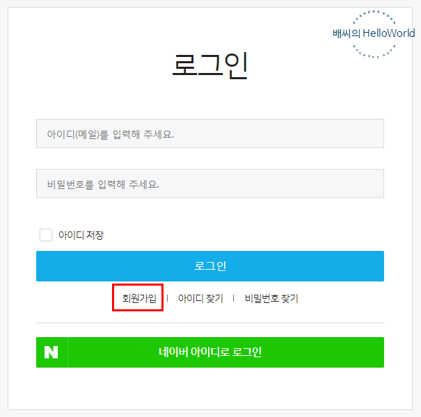 회원가입을 먼저 진행합니다.