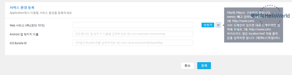 웹 서비스인경우 대표 도메인만 입력을 합니다.