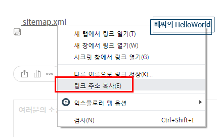 링크를 복사하여 구글 Search Console이나 네이버 웹마스터 도구의 사이트맵 등록에 해당 URL을 넣어 사용하시면 됩니다.