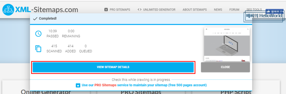 다음 VIEW SITEMAP DETAILS 버튼을 클릭합니다.