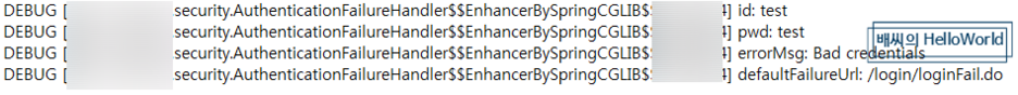 그럼 로그인 실패시 logger에 다음과 같이 남기고 URL을 이동하게 됩니다.