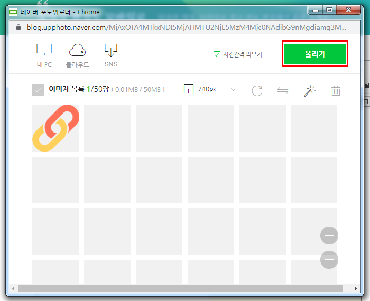 이미지를 추가 후 올리기 버튼을 클릭하세요.