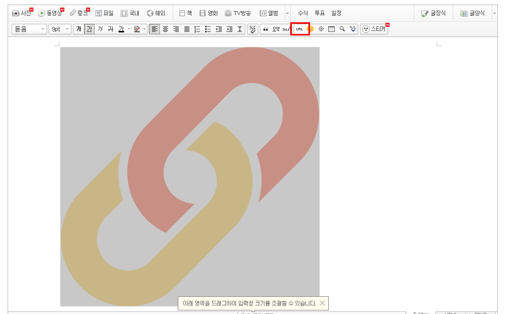 해당 이미지를 클릭하고 URL 버튼을 눌러주세요. (꼭 이미지가 드래그된 상태에서 URL을 클릭해주세요.)