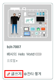 본인의 프로필 - 글쓰기로 글 작성을 합니다.