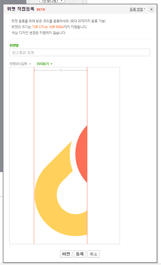 확인을 마친 후 위젯 등록을 해야 합니다.