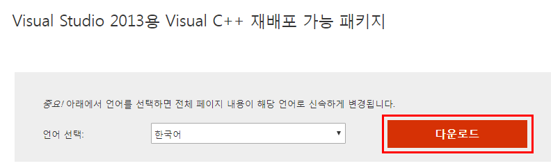 Visual Studio 2013용 Visual C++ 재배포 가능 패키지