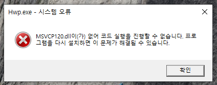 오늘은 한글 실행 시 MSVCP120.dll 오류에 대한 해결방법에 대해 알려드리겠습니다.